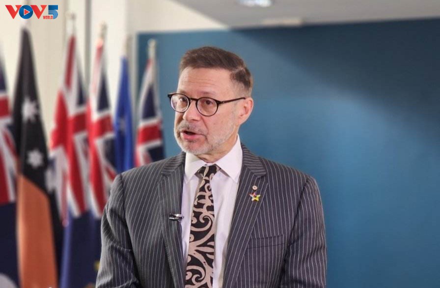 El embajador de Australia en Hanói, Andrew Goledzinowski, en entrevista con VOV. |