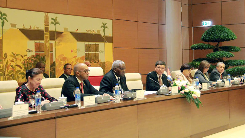 (VOVWORLD) - El secretario general del Partido Comunista de Vietnam, Nguyen Phu Trong, en su encuentro sostenido este martes en Hanoi con Esteban Lazo Hernández, presidente de la Asamblea Nacional de Cuba, expresó la convicción de que la delegación de alto nivel del órgano legislativo de la isla caribeña contribuirá a promover aún más los lazos de hermandad ejemplares, la amistad tradicional y la cooperación integral entre los dos países.