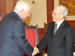 (VOVworld) - En el recibimiento de este jueves al presidente panameño, Ricardo Martinelli, en visita oficial a Vietnam, el secretario general del Partido Comunista, Nguyen Phu Trong, consideró el acontecimiento como un importante hito en las relaciones bilaterales.