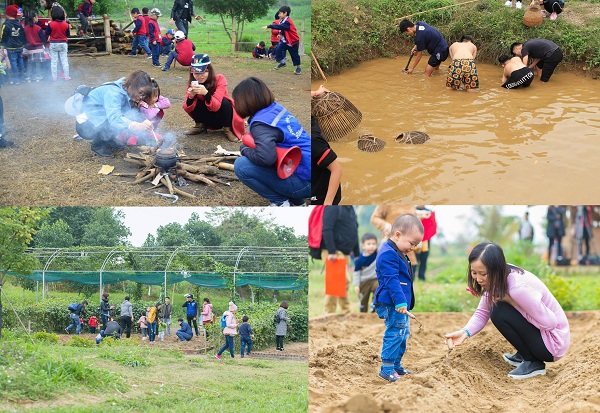 Effectivement… Pour les enfants, c’est une véritable classe verte. Ils peuvent - et en toute sécurité, que les parents se rassurent ! - découvrir les nombreux animaux de la ferme : poules, coqs, bovins, chèvres... Ils peuvent les caresser, apprendre à s’occuper d’eux et profiter des espaces verts. Ils ont également la possibilité de récolter les fruits et les légumes de la ferme... Une sacrée expérience, pour ces petits citadins plus habitués à manier la télécommande que le râteau, mais qui apprennent ainsi à apprécier le contenu de leurs assiettes. C’est le cas de Thao Anh, 5 ans, qui petit à petit, prend conscience qu’un bon repas, ça se mérite ! « Là, je récolte des patates douces. Maman m’a promis de préparer des frites ce midi. Ensuite, je vais ramasser des œufs pour faire des omelettes. », nous raconte-t-elle.