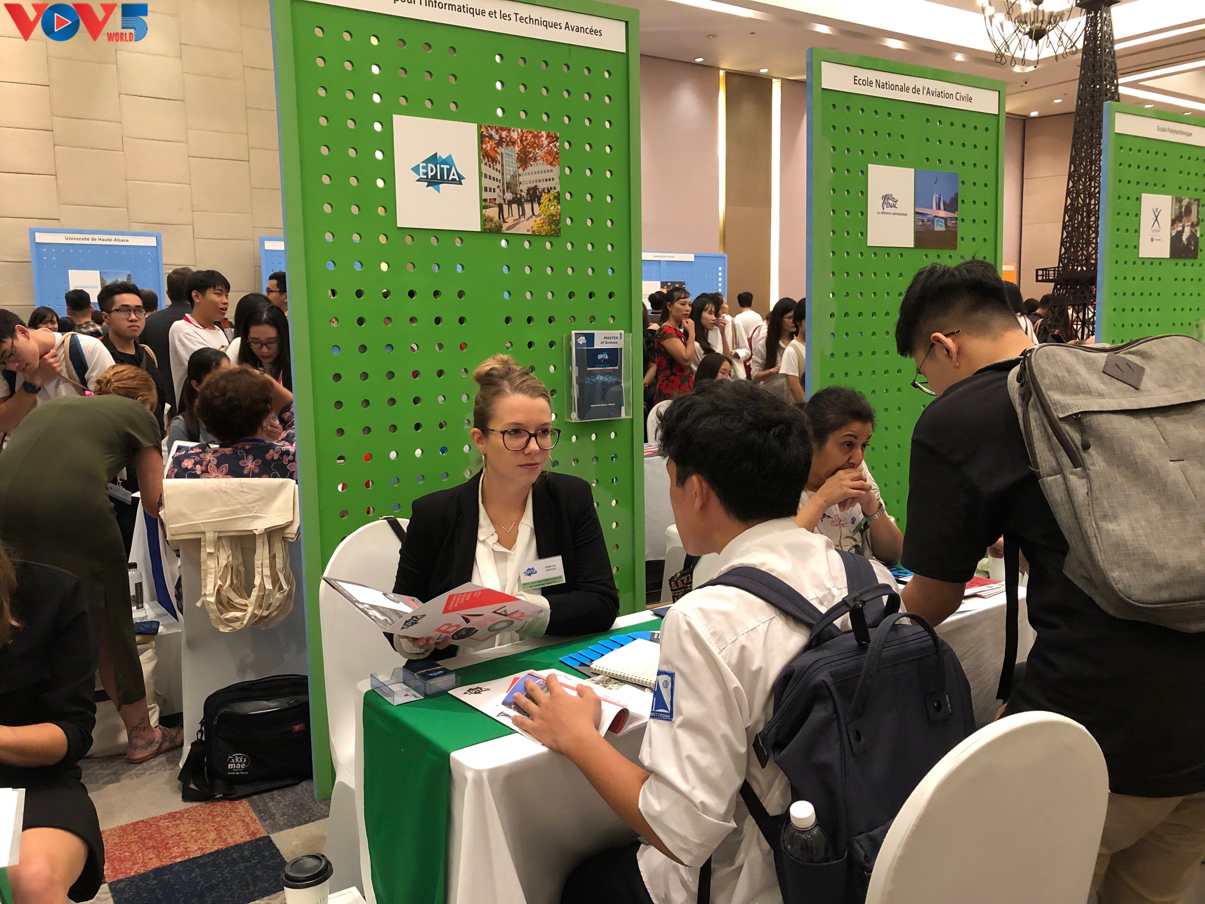 Cette année, 46 établissements français et franco-vietnamiens d'enseignement supérieur, de la licence au doctorat, dont 9 universités, 19 écoles de commerce, 9 écoles d’ingénieur et 9 écoles spécialisées en gastronomie, hôtellerie et arts créatifs ont répondu présents. Stéphanie Chatelet, coordinatrice des programmes internationaux de l'École d'ingénieur en informatique (EPITA), précise: