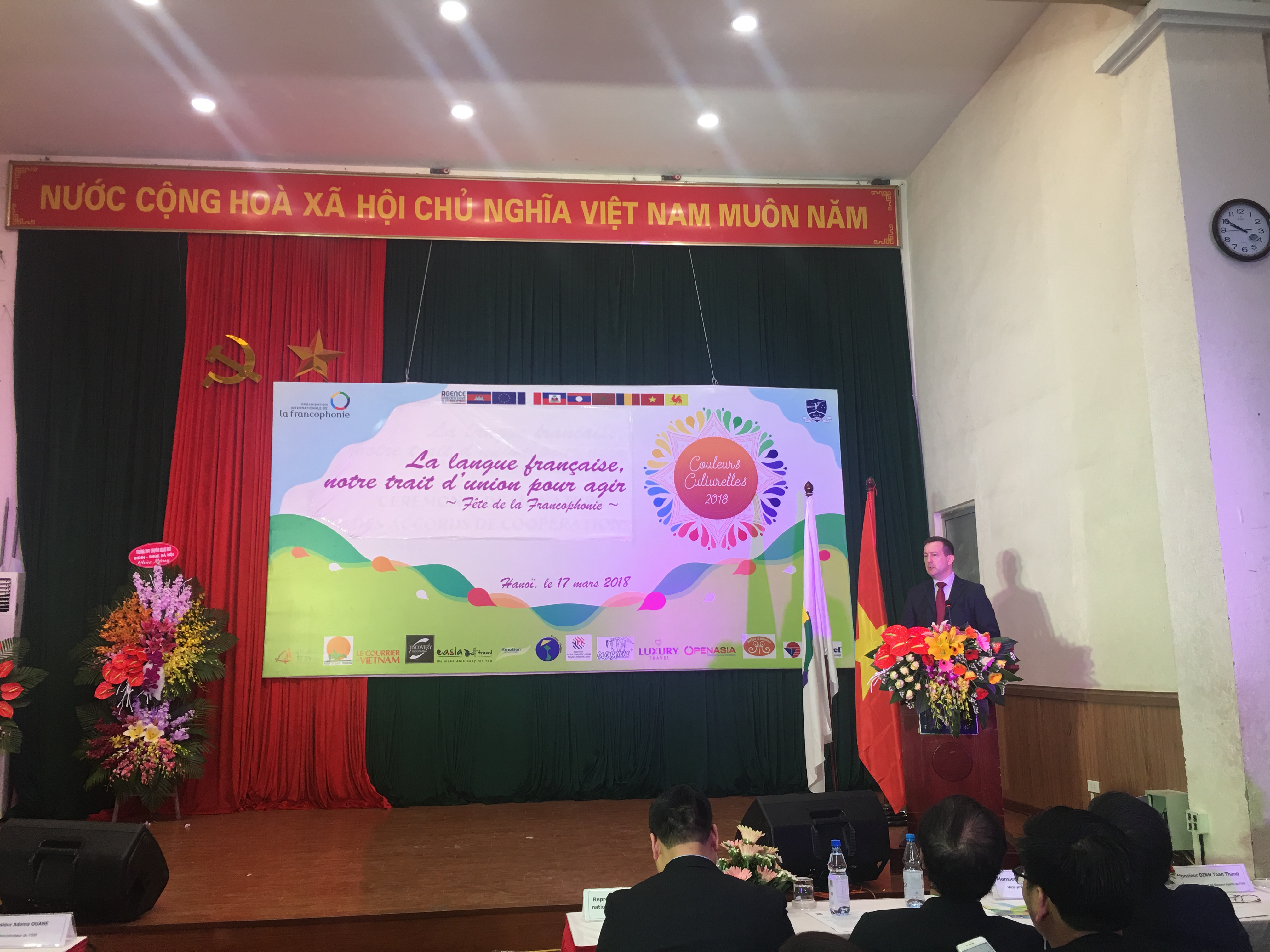 L'événement a vu la présence de Bertrand Lortholary, ambassadeur de France au Vietnam, d’Adama Ouane, directeur de l’OIF, de Jehanne Roccas, ambassadrice de Belgique au Vietnam mais aussi présidente du GADIF, de Dinh Toan Thang, correspondant national auprès de l'OIF. A ceux-là, s’ajoutaient de nombreux représentants de l’université, de différentes ambassades et organisations internationales.