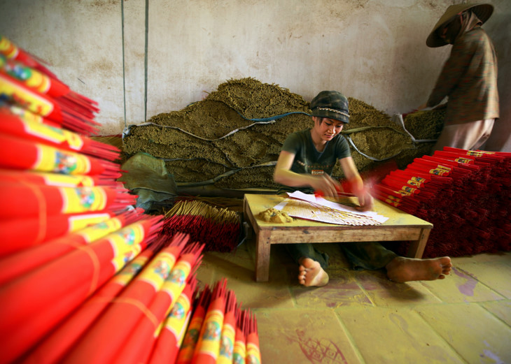 Les femmes contribuent à la préservation et au développement des villages d’artisanat et donc des valeurs culturelles vietnamiennes. |