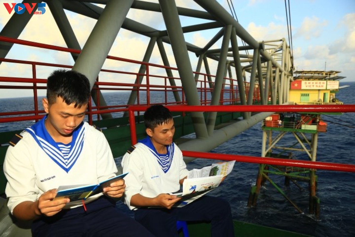 | Moments de détente des soldats sur des plates-formes DK1. Photo: Thu Lan/VOV |