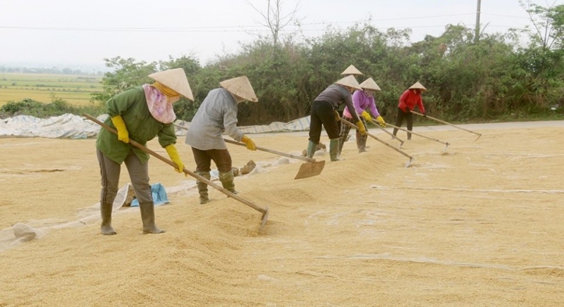 Les femmes sont en train de faire le séchage du riz (photo: VOV) |