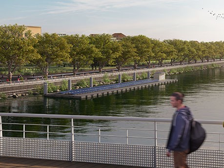 Grâce à ses panneaux solaires dépliables, la centrale solaire mobile flottante installée sur la Seine fournira une production d’électricité équivalente à la consommation de 94 appartements du Village olympique et paralympique. Photo: edf.fr |