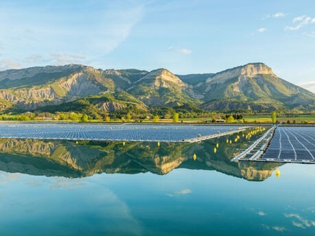 Le parc solaire de Lazer (Hautes-Alpes), l’un des premiers en Europe mettant en œuvre la technologie innovante du photovoltaïque flottant, fait partie des sites qui produiront une électricité d'origine renouvelable injectée sur le réseau pendant les Jeux Olympiques et Paralympiques de Paris 2024. Photo: edf.fr |