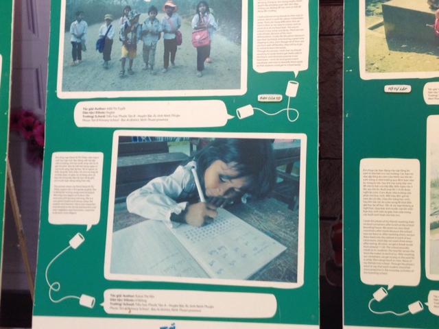« Les adultes peuvent prendre conscience de ce qui intéresse les enfants. Et pour les petits citadins d’ici, c’est une découverte ! Ils savent maintenant ce que c’est que le quotidien de leurs camarades des provinces montagneuses. C’était d’ailleurs le principal but de l’opération », nous précise Hoàng Huy Thành, chargé de projet de l'institut d'études sur la société, l'économie et l'environnement, en ajoutant: « Environ 20 mille photos ont été prises par 49 élèves de 4 groupes ethniques : les Mong, les M’Nong, les Cham et les Raglai. On a travaillé dans les provinces de Lao Cai, de Ninh Thuan et de Dak Nong. Nous avons choisi les 120 meilleures photos pour les exposer à Hanoi et après dans ces provinces. Nous avons appliqué la technique « photo-voice » pour ce projet, c’est-à-dire que nous avons distribué des appareils photo numériques à chaque élève en leur expliquant le fonctionnement de base. Ensuite, ils ont photographié tout ce qu’ils voulaient, mais en justifiant leur choix par un court récit. C’est comme ça qu’ils se sont mis à nous confier leurs histoires enfantines, leurs pensées naïves et leurs rêves… ».