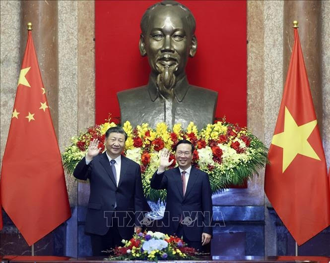 Le président vietnamien Vo Van Thuong (droite) et le secrétaire général du Parti communiste et président chinois, Xi Jinping. Photo: TTXVN |