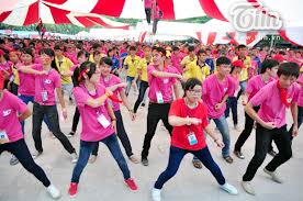 Eh oui, et en plus c’est facile à faire un flash mob ! Il n’est absolument pas nécessaire d’être un roi de la danse. Ce qui compte, c’est l’enthousiasme et l’envie de s’intégrer à la communauté. Mais c’est aussi l’envie de partager avec le plus grand nombre, ce qui explique que tant de flash mob soient filmés et diffusés ensuite sur Internet. Pour les jeunes, c’est un moyen de se rassembler et souvent de donner corps à des projets. C’est la même chose au Vietnam. Ca sert à célébrer des évènements nationaux ou des anniversaires, et parfois même à déclarer sa flamme à l’élue de son cœur. C’est en tout cas ce qui est arrivé à Cuong et Hà. En Avril dernier, Cuong a appelé ses amis pour faire un flash mob dans le quartier de Tay Ho, histoire de faire sa demande en mariage d’une manière pour le moins originale. Au début, il n’y avait qu’une trentaine de participants, mais très vite, il y en a eu une cinquantaine, et l’effervescence en plus. Alors évidemment, Ha n’a pas pu résister, elle n’a su que dire « oui », dans les vivats de la foule. Et tout le monde s’est embrassé pour partager la joie du couple.