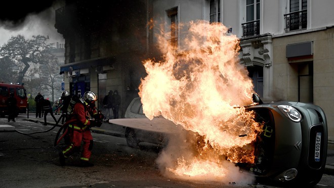 Plus d'un millier de manifestants se sont rassemblés sur la place Wagram dans le XVIIe arrondissement de Paris. Le lieu était le point de départ de l'un des deux cortèges autorisés ce samedi, deux autres ont été interdits. Les forces de l'ordre ont tiré quelques gaz lacrymogènes vers 12h30 pour repousser les manifestants vers la place Wagram et les empêcher de s'approcher des Champs-Elysées. Des militants ont incendié quelques poubelles, certains sont vêtus de noir et encagoulés. La plupart des manifestants ont des masques mais assez peu portent des "gilets jaunes".