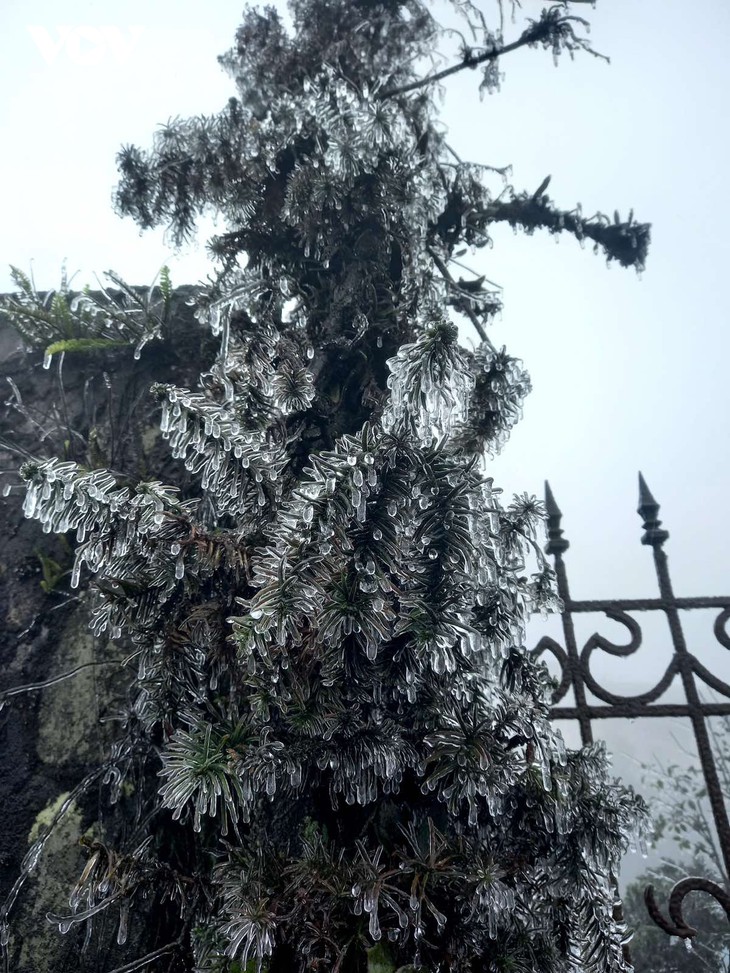 Des arbres couverts de verglas au sommet Mâu Son le 20 février. Photo: Hoàng Lang Huy.