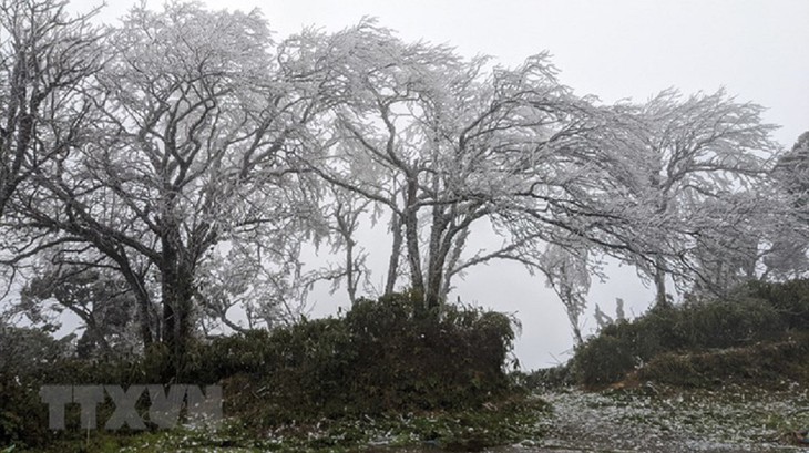 Le 20 février, des températures négatives enregistrées au sommet Phia Oac, dans la province de Cao Bang. |