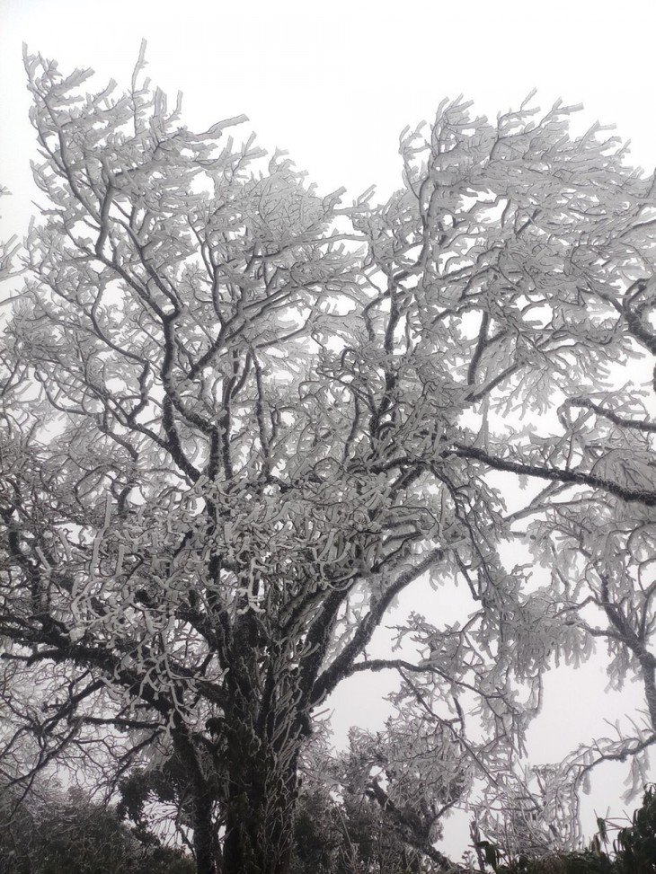 Le gel couvre les arbres et les parois. Photo: laodong.vn.