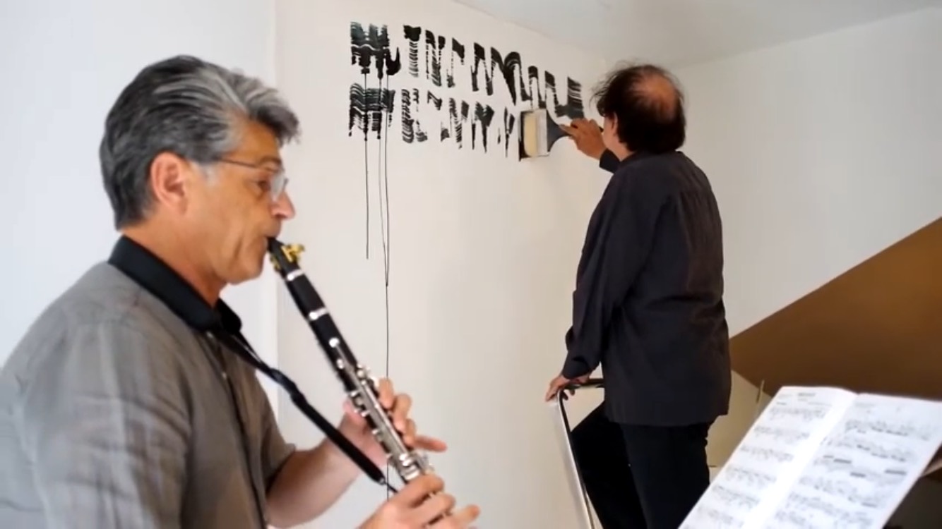 Toujours à l’occasion de cette exposition hanoïenne, l’artiste a diffusé une vidéo sur la création d’une peinture musicale réalisée spécialement pour le vernissage. Il s’agit d’un grand tableau noir et blanc inspiré des «Trois pièces pour clarinette seule» d’Igor Stravinsky.