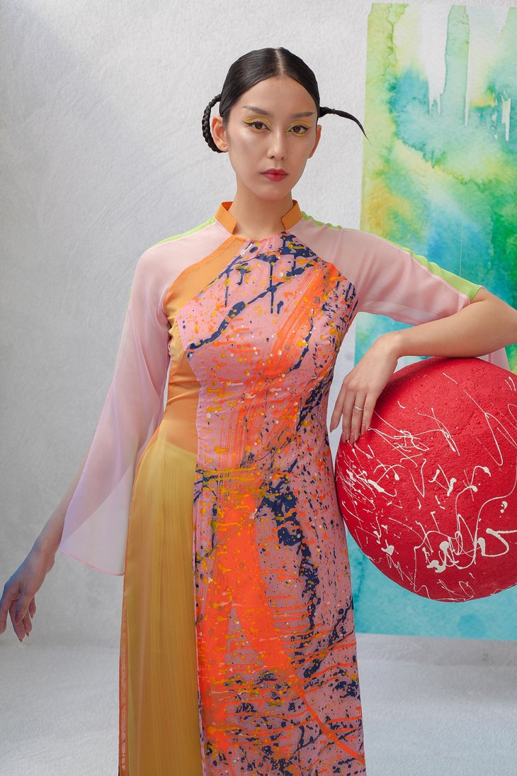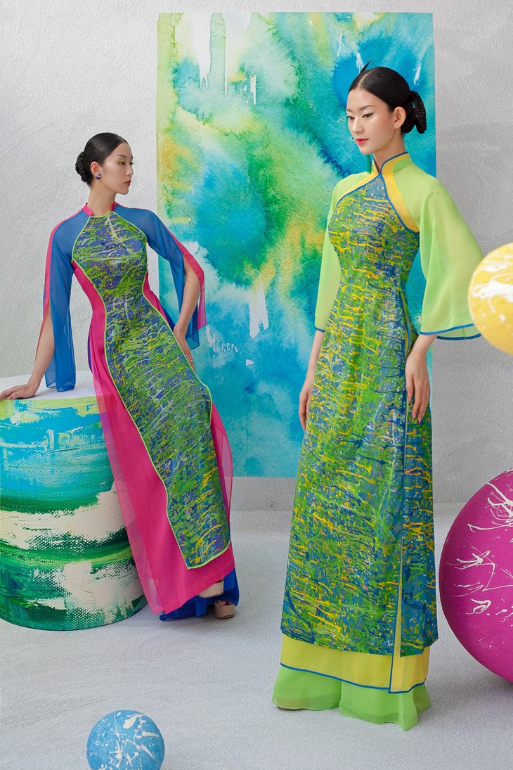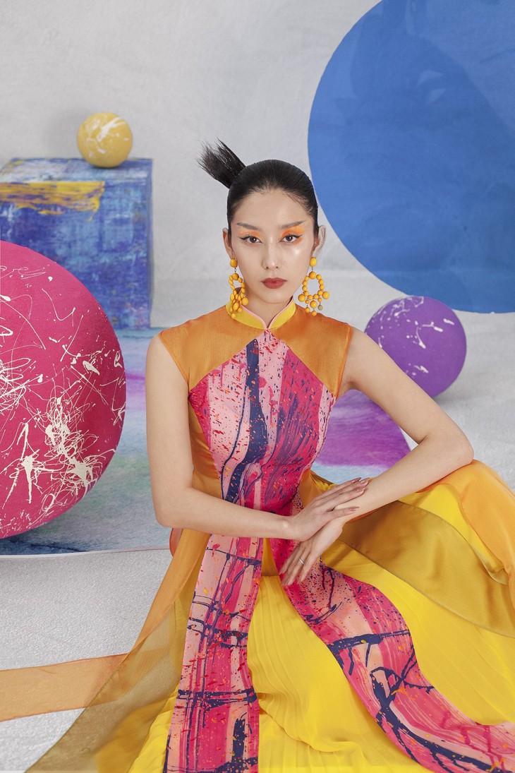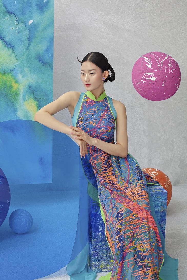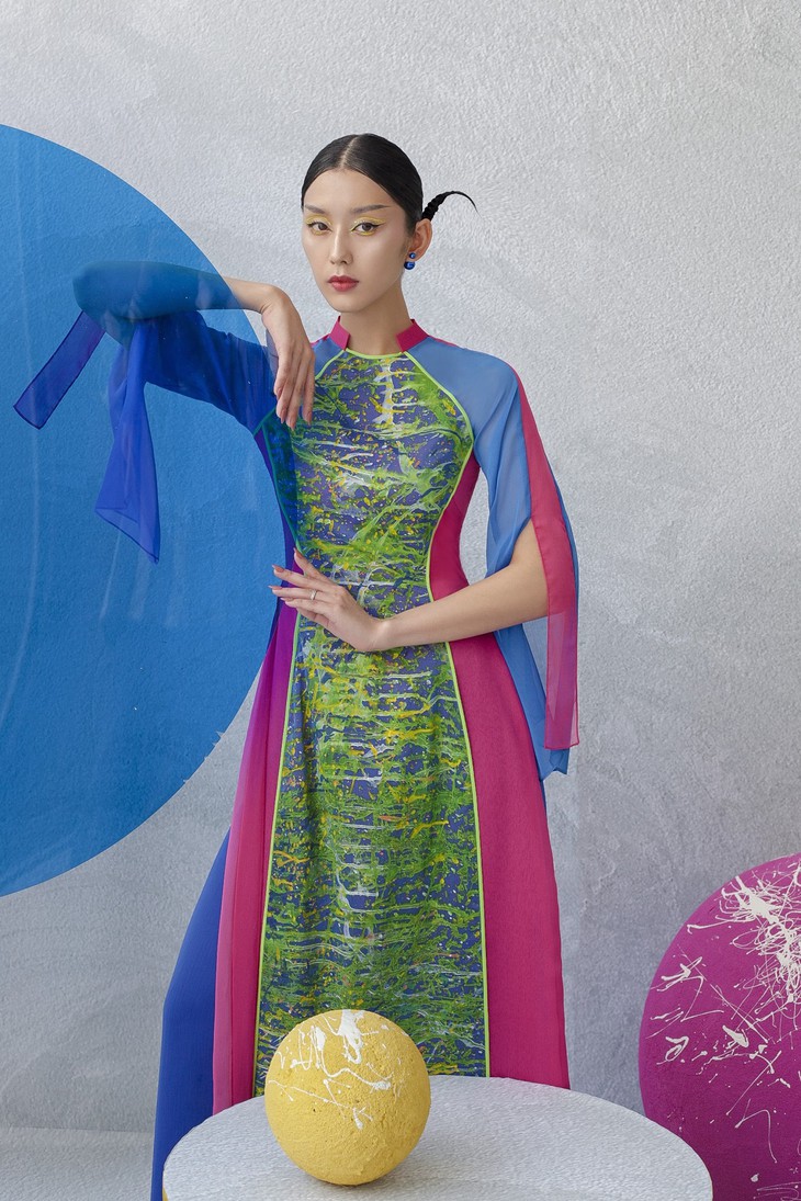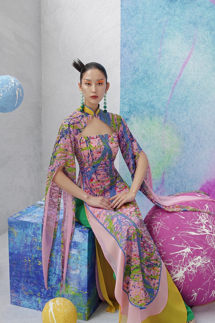 En donnant la part belle à la peinture, Kenny Thai souhaite donner un coup de jeune à l’ao dài traditionnel.