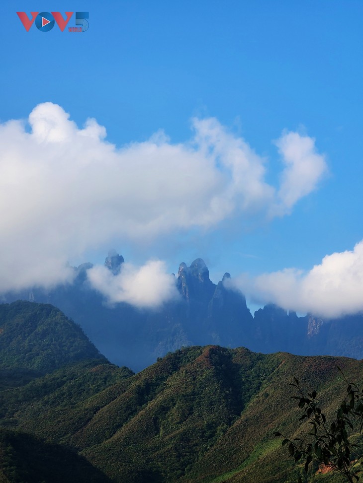 Pour arriver à Ky Quan San au matin, on doit commencer l’escalade la veille et passer la nuit à Nui Muôi, à 2.215 mètres d’altitude, avant de poursuivre la randonnée à l’aube. |