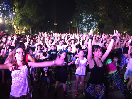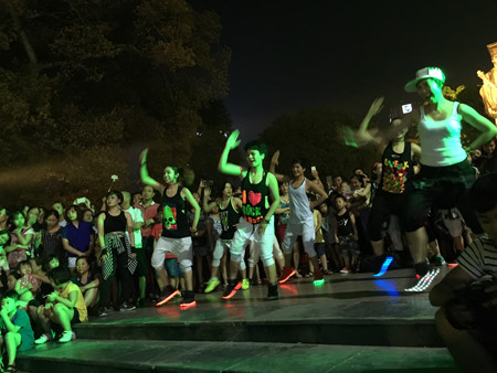 Dans la Zumba, les apprentis ne doivent pas forcément mémoriser tous les pas, pas plus qu'ils n'ont besoin d'un partenaire. Il n’y a qu’un seul principe à suivre: s'amuser. Pas étonnant, dès lors, que la zumba soit devenue aussi populaire! Pour preuve, à l’occasion du 4ème anniversaire du club LaZum3, des milliers de personnes se sont réunies au parc Ly Thai To, en plein cœur de la capitale pour une sorte de "flahmob" assez inoubliable. Hanh An poursuit: