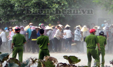 ![]() Rassemblement de certains paroissiens de la commune de Nghi Phuong, district de Nghi Loc, province de Nghe An, pour entraver les activités des organes administratifs locaux. Source: congannghean