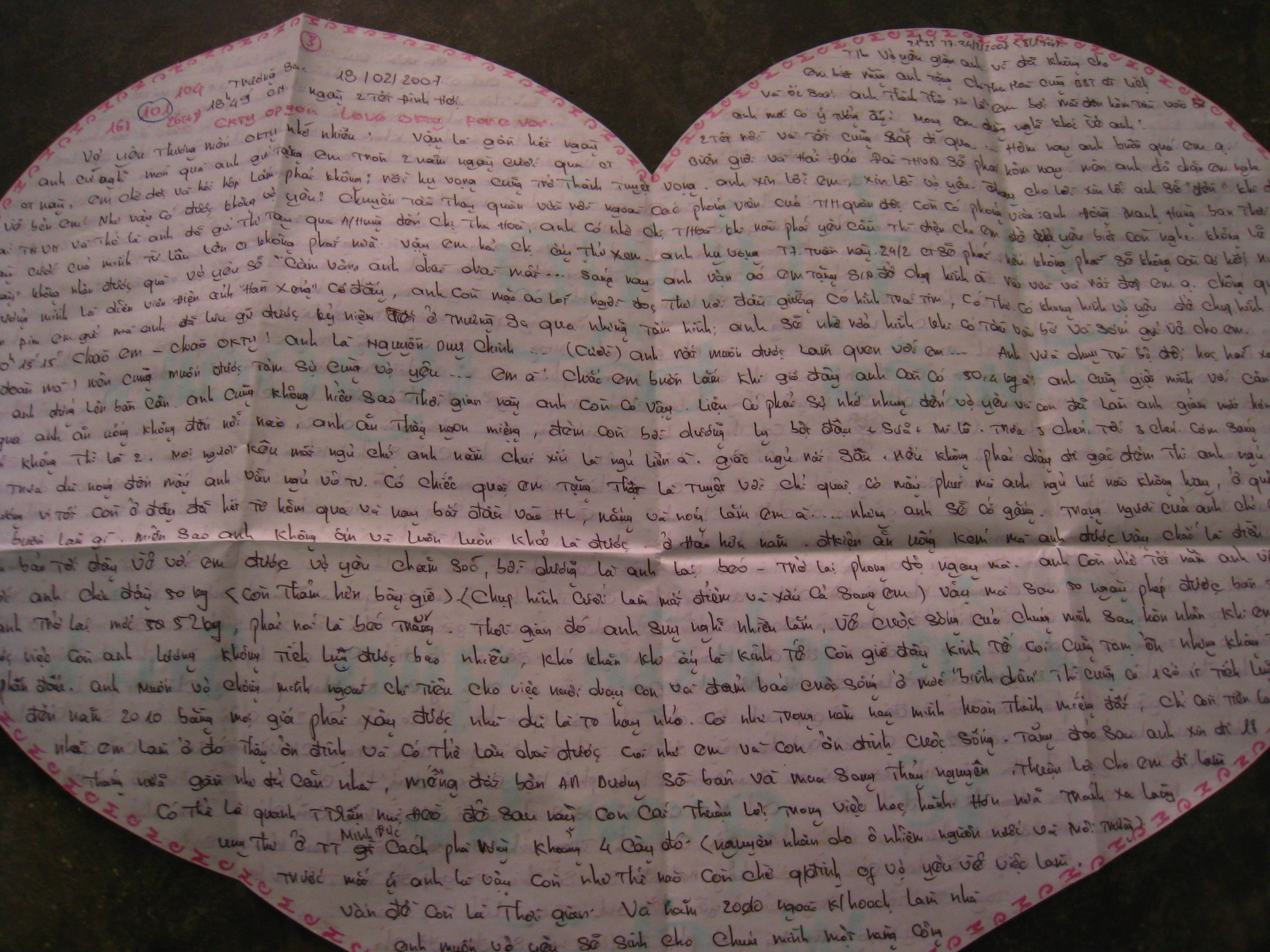 Hoang Thi Mai est enseignante, elle a connu le sous-lieutenant de la marine Nguyen Duy Chinh stationné sur l’archipel grâce au journal Tien Phong et sa rubrique « Les lettres d’amour ». Après 4 ans de relation épistolaire, ils ont décidé de se marier. Pour lui, une trêve de 2 petits mois passés ensemble, avant qu’il reparte à Truong Sa. Pour elle, la naissance du premier enfant, seule. C’est seulement après 2 ans que son mari a vu, pour la première fois, le visage du fils sur la photo que sa femme lui avait envoyée. Loin de son mari, elle mène une existence difficile à Hai Phong. Mai a dû changer plusieurs fois de logement, car son loyer ne cessait d’augmenter. « Je ne pouvais pas partager avec lui mes sentiments et mes peines, dit-elle. Lorsque mes enfants étaient malades, et que je suis tombée moi-même malade, personne ne venait nous aider… la vie était dure… Lui, il m’aime de loin ; mais il ne peut rien faire à part me téléphoner pour m’encourager. Moi aussi, je pense à sa mission difficile et je l’encourage. Et j’assume au mieux mon rôle de mère ».