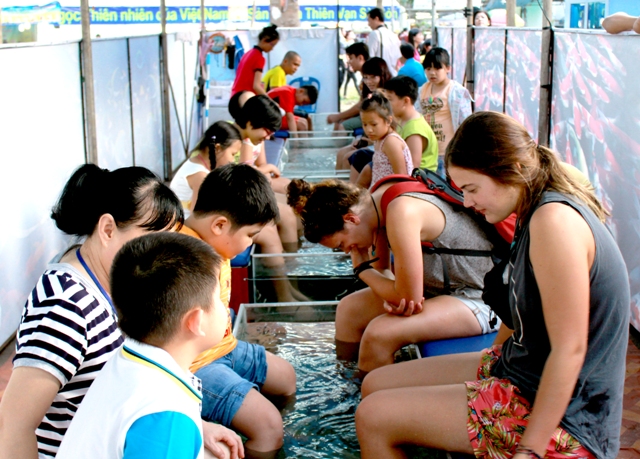 Les Garra rufa participent au gommage curatif en enlevant les peaux mortes, ou affectées. Votre peau est comme neuve. Ces poissons, qui n’ont pas de dents, appliquent de délicates succions pour se nourrir des peaux mortes. Il faut compter 50.000 dongs, soit 2,5 euros seulement.