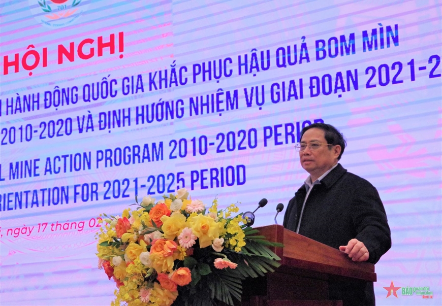 Le Premier ministre, Pham Minh Chinh, lors de la conférence bilan de 10 ans de mise en oeuvre du programme national sur la réparation des conséquences de guerre au Vietnam |