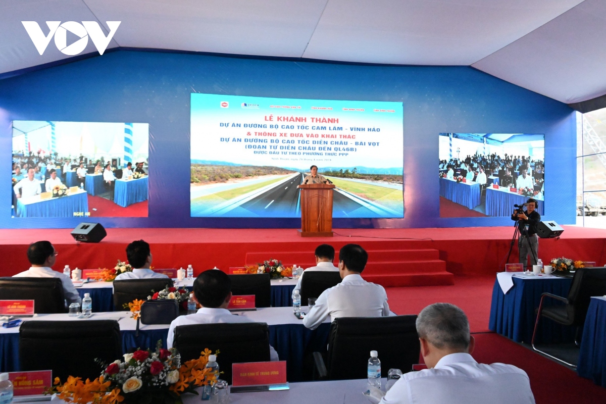 Le Premier ministre Pham Minh Chinh lance le mouvement d'émulation "500 jours et nuits pour achever la construction de 3.000 km d’autoroutes". Photo: VOV |
