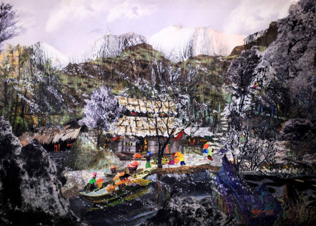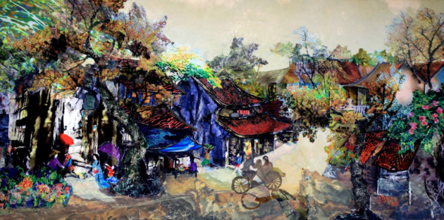 “Un après midi d’automne à Hanoi” a été réalisé avec des centaines de petits morceaux de tissus cousus les uns aux autres.