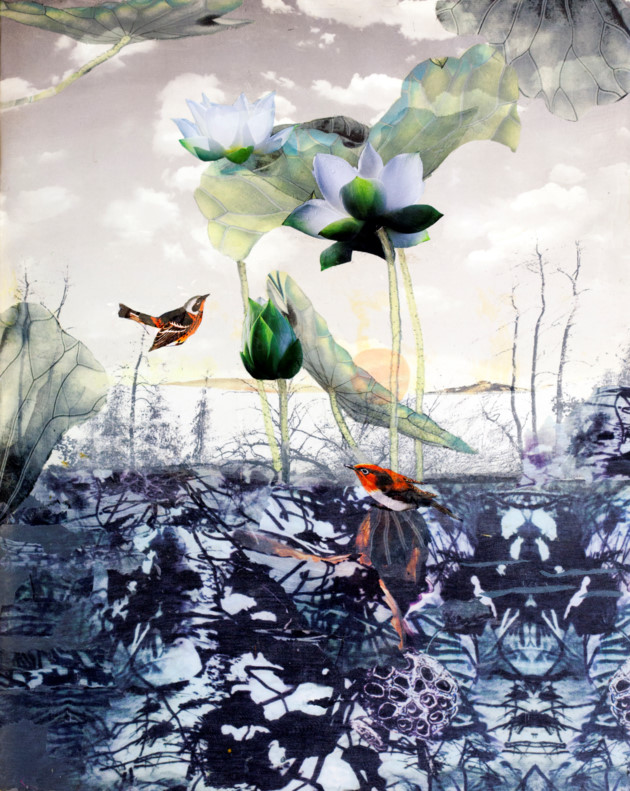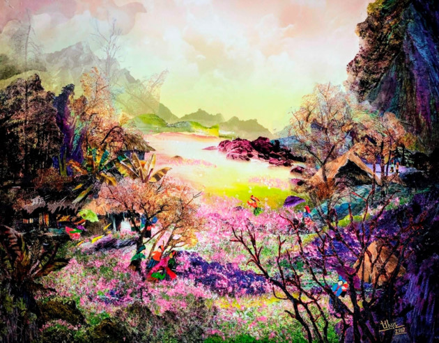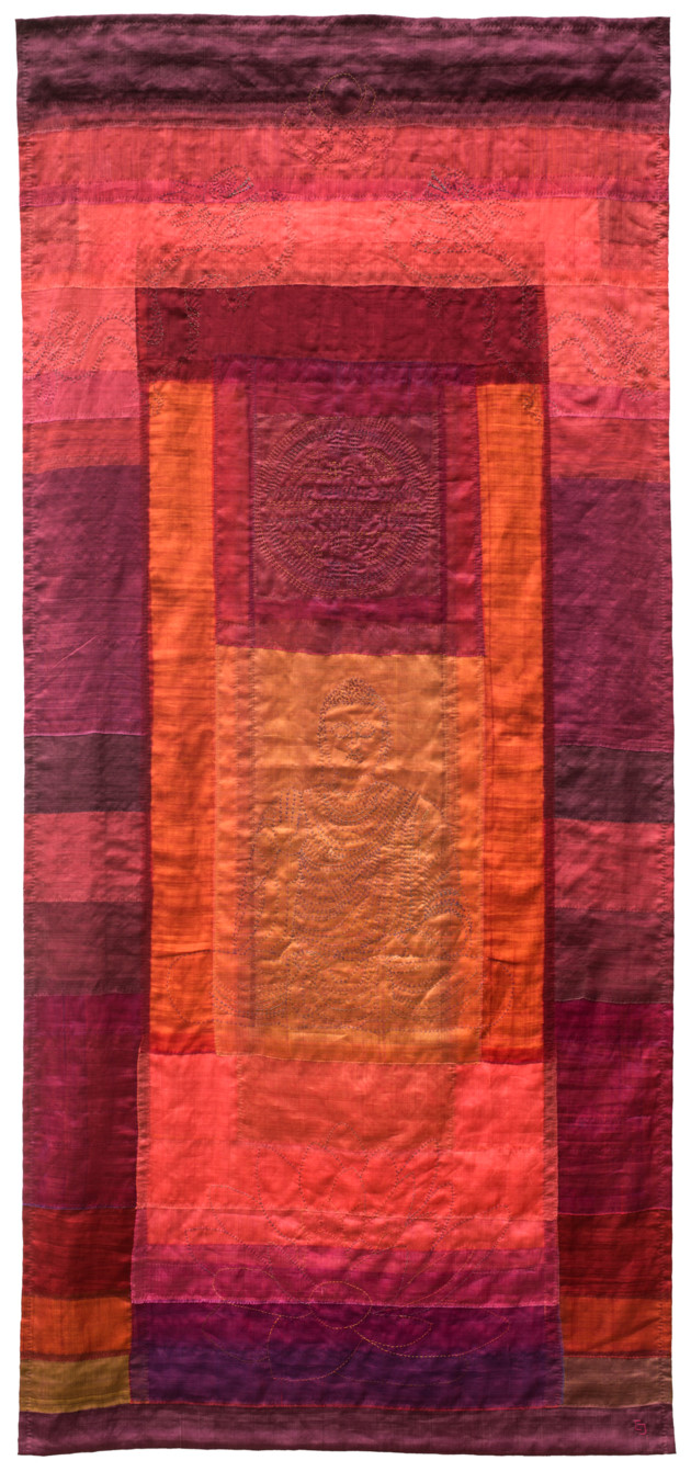Si Catherine Juillerat a choisi la broderie pour s’exprimer, Thanh Thuc travaille le tissu. L’oeuvre: le printemps dans une région frontalière.