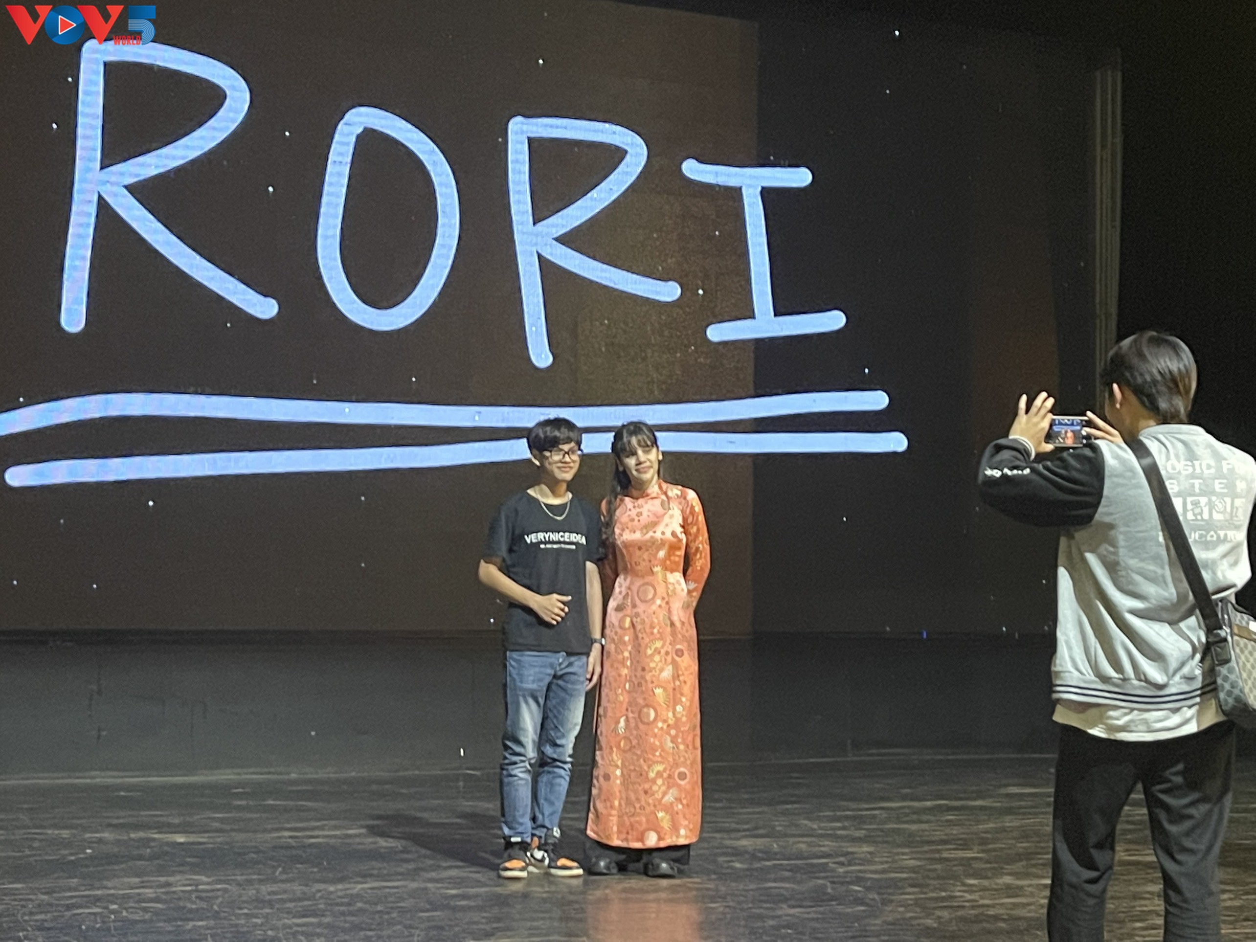 Rori porte l'ao dai sur scène. Photo: Thuỳ Linh/VOV5 |