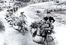 « Quand j’étais prisonnier, j’ai vu des fils ininterrompus de coolies d’un horizon à l’autre et les vélos qui étaient chargés de toutes sortes de provisions. Je pense que c’est comme ça, entre autres, que Giap a gagné la bataille. J’ai vu de mes yeux des fils de bicyclettes ininterrompus et sur chaque bicyclette, il y avait deux, trois sacs de riz ou il y avait deux, trois caisses de munitions. Il y avait un coolie qui poussait la bicyclette. Il n’était pas question de monter sur la bicyclette et de pédaler. La bicyclette, c’était un instrument de transport et c’est comme ça que le général Giap a pu ravitailler les 30 000 soldats qui se trouvaient à Dien Bien Phu. »