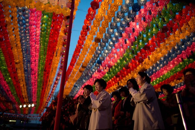 En République de Corée, le Vesak est célébré en suivant le calendrier lunaire. Des lanternes en papier en forme de lotus couvrent tous les temples pendant un mois, et bien souvent on trouve ces lanternes suspendues dans les rues. Le jour du Vesak, de nombreux temples offrent des repas gratuits et du thé aux visiteurs. La tradition veut également que l'habit traditionnel coréen, le hanbok, soit porté comme marque de respect. Le petit déjeuner et le repas offerts sont souvent composés de sanchae bibimbap.