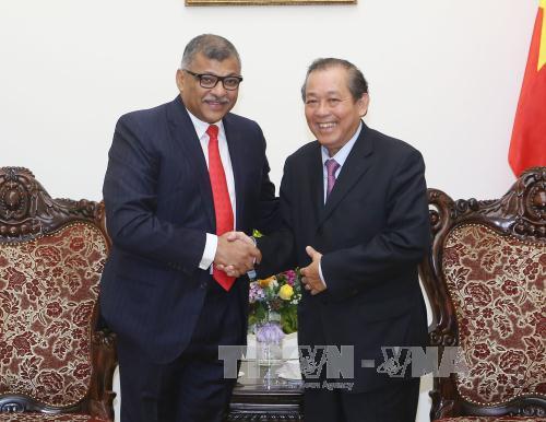Le vice-Premier ministre Trinh Dinh Dung (droite) et Robert Yap, président exécutif du groupe YCH |