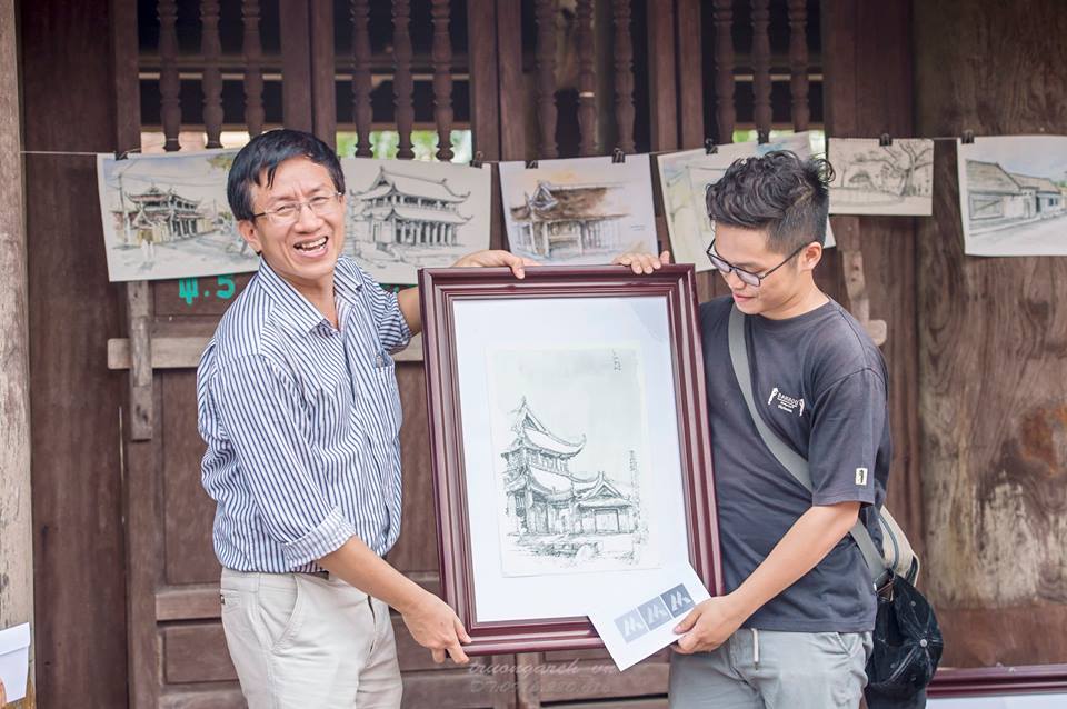 Après une journée de visite dans un village ancien, le club du patrimoine culturel organise un concours de dessin. Maisons communales, pagodes, rivières, maisons… chaque membre du club choisit un sujet pour exprimer son attachement aux traditions villageoises. A l’issue de la dernière excursion vers Hanh Thien, qui est un village rattaché à la province de Nam Dinh (Nord), le premier prix a été attribué à Le Van Tung, étudiant de l’Ecole supérieure du Génie civil.