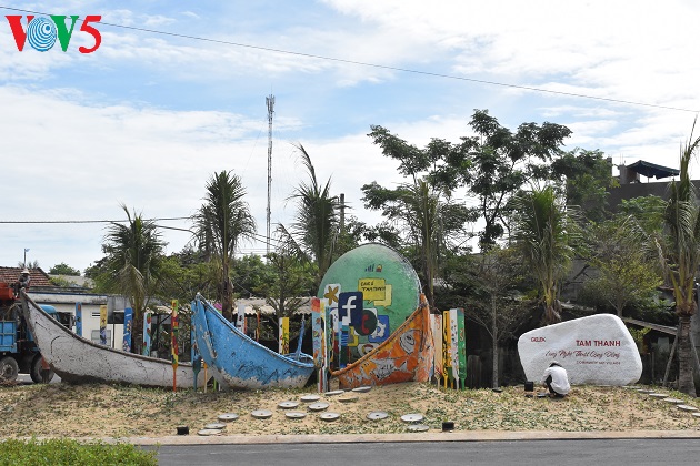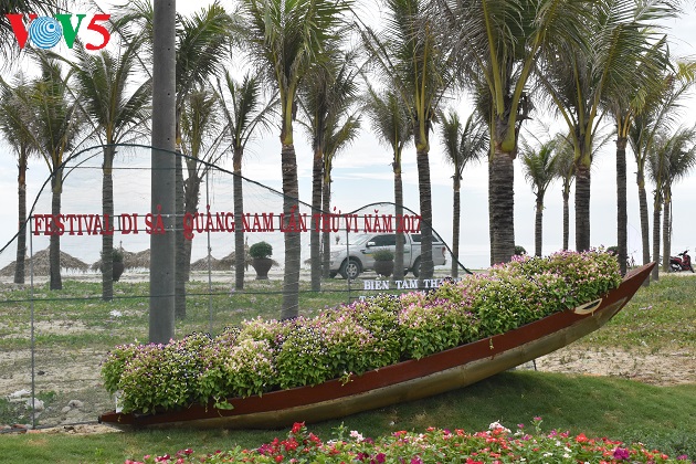 | Les rues et la plage sont décorées de fleurs et des ornements représentatifs de Quang Nam. |