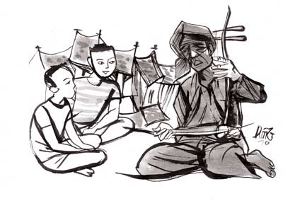 A la demande de notre ami allemand, Thomas Ulrich, nous vous parlerons aujourd’hui du chant des aveugles - le hat xam. Son origine remonte à la dynastie des Tran, au 13ème siècle. Selon la légende, Trần Quốc Đĩnh, le prince héritier du roi Trần Nhân Tông aurait été rendu aveugle par son propre frère Trần Quốc Toán, qui s’empara du trône. Trần Quốc Đĩnh fut abandonné dans une forêt lointaine. Emu par ses pleurs déchirants, le Bouddha lui apparut et lui révéla des airs capables d’adoucir les coeurs les plus durs. Sauvé, ce prince aveugle refusa de revenir au palais pour passer le reste de sa vie à enseigner cet art musical, qui, au fil du temps, devint le gagne-pain des malvoyants.