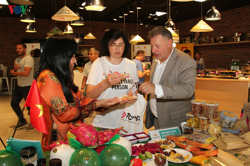 Ta Duc Minh, conseiller commercial du Vietnam au Japon (2e à droite) présente le litchi – Photo VOV |