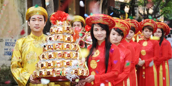 De nos jours, les Vietnamiens sont libres de choisir leur autre moitié, et les noces sont beaucoup plus simples. Quand les jeunes décident de vivre ensemble, leurs parents se rencontrent pour discuter des dispositifs du mariage, en particulier du jour et de l’heure des noces, choisis toujours selon les résultats de la divination. On décide aussi des cadeaux, qui comprennent les incontournables bétels et noix d’arec ainsi que des gâteaux, du thé et de l’alcool. Ils seront apportés chez la mariée durant la première cérémonie des fiançailles, ăn hỏi, puis distribués à ses proches.
