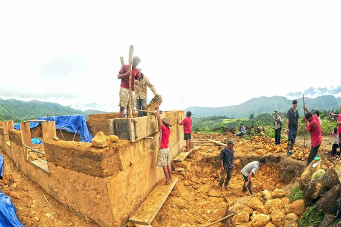 Les hommes Ha Nhi qui se respectent savent battre de la terre pour construire leurs maisons. Les travaux ont lieu pendant la saison sèche, c’est-à-dire entre le 8ème et le 12ème mois lunaire. Ly Di Go habite dans une maison vieille de 10 ans semblable à un blockhaus marron qui se distingue du vert des arbres. Il en est tout fier.