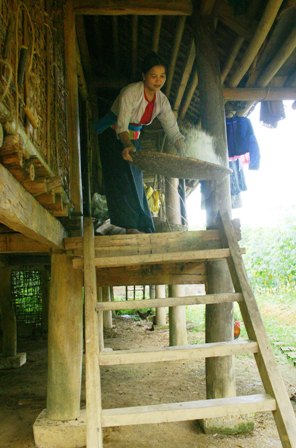 Ai est un hameau qui se trouve dans la province de Hoà Binh, en plein fief Muong Bi. Les Muong qui y vivent perpétuent la tradition des maisons sur pilotis. Celle de leur patriarche Bui Van Khanh, par exemple, présente une parfaite synthèse des traditions locales. Simple et rudimentaire, toute en bois et en bambou, elle reste ouverte à tous les vents toute l’année. Autant dire qu’il y fait frais en été, ce qui n’est pas forcément désagréable, mais franchement froid en hiver, ce qui est une autre histoire !... Cela étant, il en faudrait bien plus pour que les Muong renoncent à leur habitat traditionnel! Bui Van Khanh :