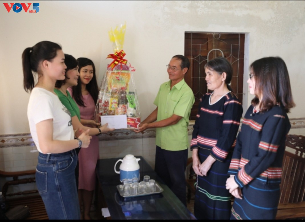 Les autorités locales remettent des cadeaux à une famille exemplaire, celle de Djonh. Photo: Ngoc Anh |