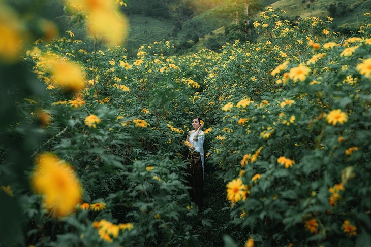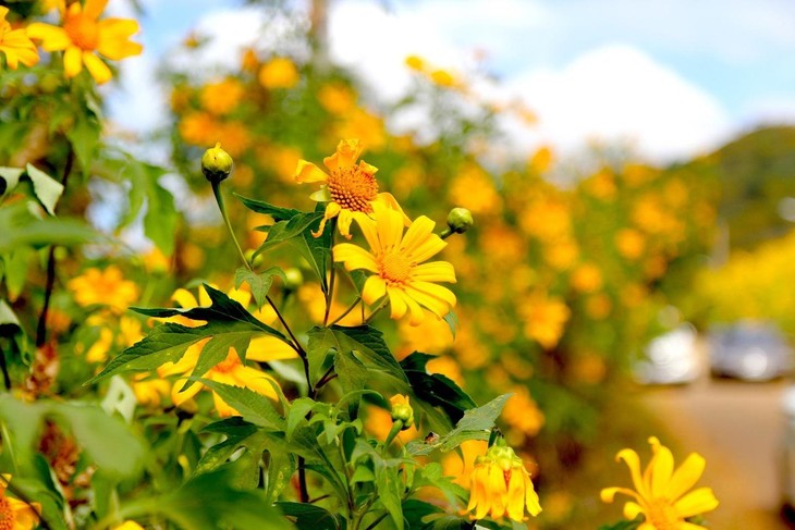 En novembre, les tournesols mexicains fleurissent partout sur les Hauts plateaux du Centre. Photo : Tân Kân | thanhnien.vn |