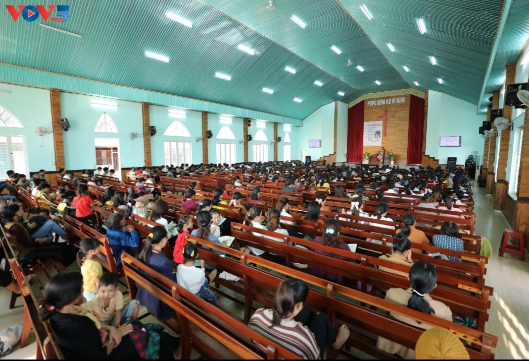Le village de Plei Mo Nu compte plus de 1.000 protestants, lesquels sont issus de l’ethnie Jrai. Les fidèles vont au temple pour chanter des cantiques, écouter les prêches sur l’amour de Dieu et la Bible, et faire des dons en faveur des villageois démunis. Après avoir assisté à la messe, le fidèle se sent plus serein et plus optimiste dans la vie, confie Rina, une villageoise.
