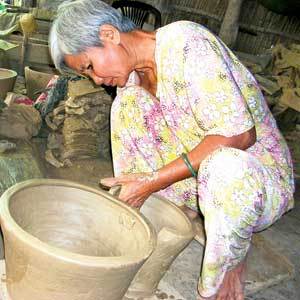 Les hommes prennent en charge le malaxage, le séchage et les autres travaux nécessitant de la force. Les femmes ne procèdent qu’au modelage. Ngo Thi No, céramiste depuis une vingtaine d’années, a appris les techniques de sa mère: « Chaque jour, je peux faire une cinquantaine de fours. Ils me rapportent environ 100.000 dongs. Bien que ce ne soit pas encore beaucoup, j’aime ce métier ancestral.»