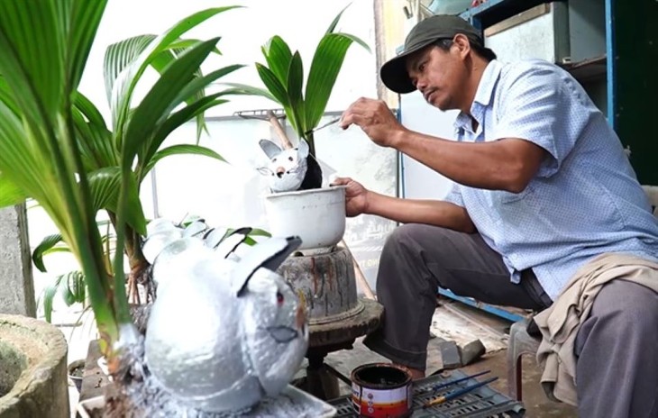 À partir de coques de noix de coco, ce propriétaire d’un jardin d’ornement de Quang Ngai a créé des bonsaï. Photo: baovanhoa.vn