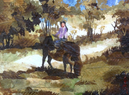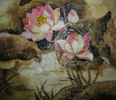 Après traitement, les feuilles revêtent différentes couleurs et sont donc prêtes à l'emploi. L’artiste commence par faire une esquisse sur papier, puis choisit des feuilles pour les tailler et les coller. Sur plusieurs centaines, seules quelques feuilles sont utilisables. Il faut bien comprendre qu’il n’existe pas 2 feuilles identiques, ce qui signifie que les oeuvres ne se ressemblent jamais, quelle que soit l’esquisse. Une fois les feuilles collées, le tableau sera enduit d'une substance qui lui permettra de garder sa brillance et l’éclat de ses couleurs. Certaines oeuvres se font en 3 jours, d’autres réclament un mois de travail. Mais en tout cas, la satisfaction est toujours au rendez-vous, comme nous l’explique Thu Thuy, employée bancaire de son état, qui aime particulièrement les tableaux en feuilles mortes : "Ce qui m’a frappé, au premier abord, c’est l’originalité et la précision des détails. Et puis chaque oeuvre est unique. J’aime beaucoup les tableaux en feuille morte. J’en possède déjà une bonne dizaine."