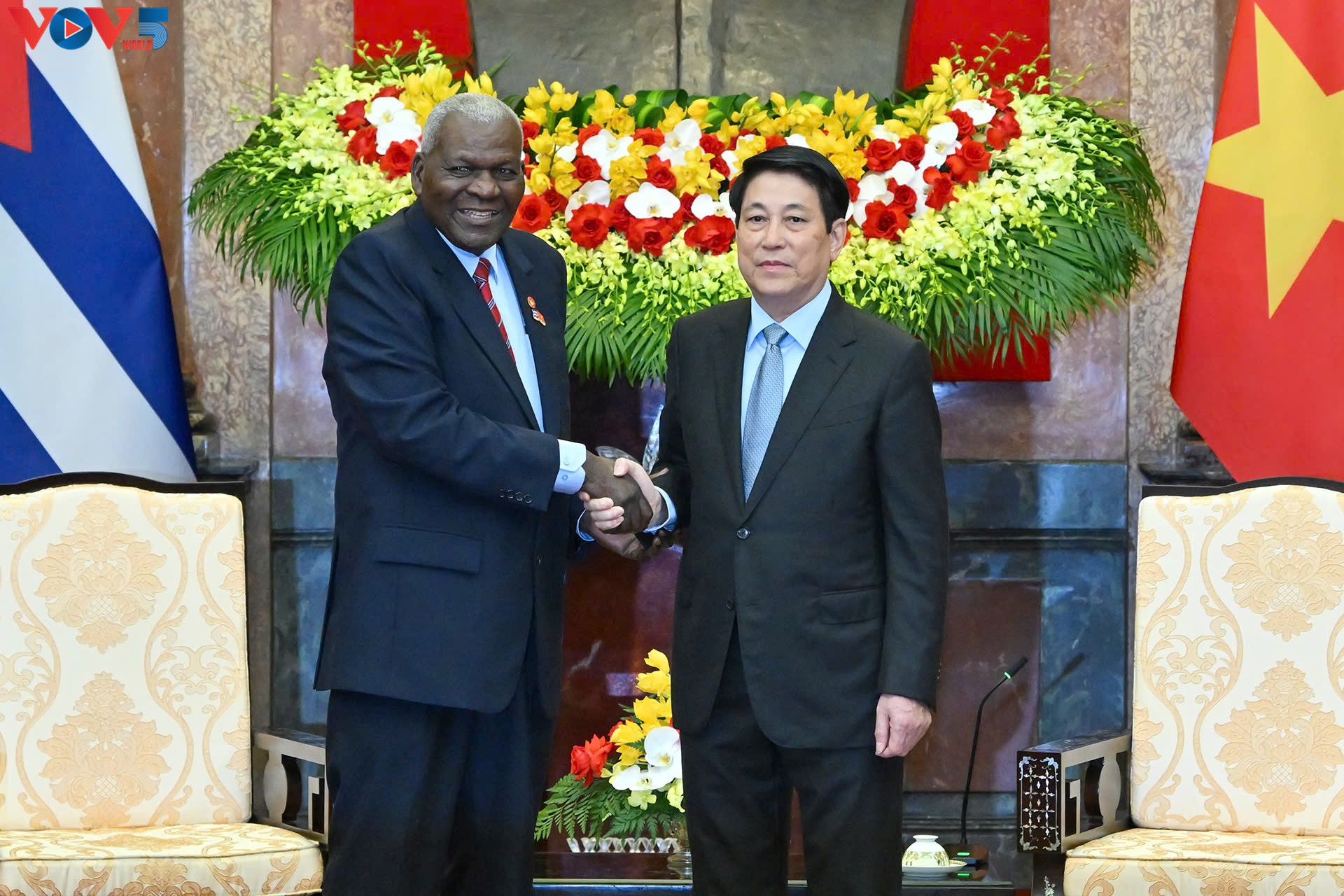 Le président de l’Assemblée nationale cubaine, Esteban Lazo Hernandez et le Premier ministre Pham Minh Chinh. Photo: Lại Hoa/VOV |