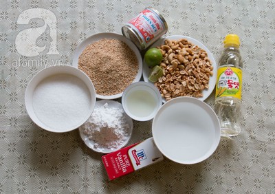 Voici la liste des ingrédients nécessaires pour confectionner environ 500 grammes de nougat : 250 grammes de sucre ; 120 grammes de cacahuètes torréfiées ; 4 cuillères à soupe de farine de tapioca ; 1 sachet de sucre vanillé ; un jus de citron ; du sésame ; 130 ml d’eau ; 1 cuillère d’huile d’arachide ou l’huile végétale. C’est parti !
