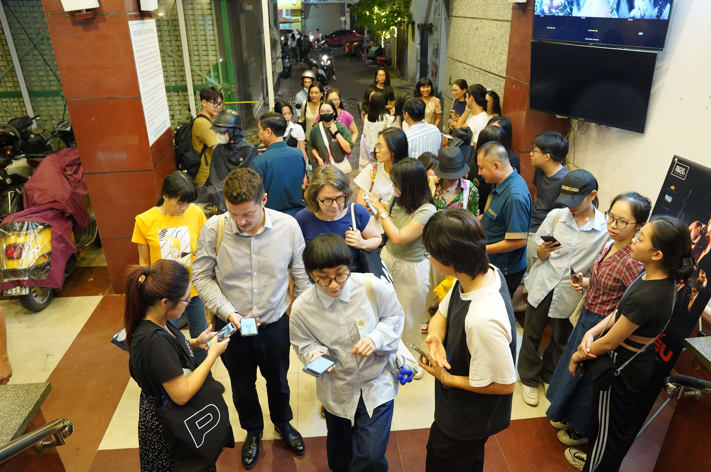 7 heures et demie… L’étroite ruelle qui mène au théâtre de la Jeunesse est déjà pleine. C’est un public très francophone qui se presse là, avec d’ailleurs un nombre impressionnant de jeunes venus tout droit du lycée Alexandre Yersin, le lycée français de Hanoï. Tous sont impatients de partir pour un voyage unique, initiatique et émotionnel, où le tangible dialogue avec l’immatériel… Ce voyage, c’est celui que leur proposent Xuân Lê et sa partenaire, la danseuse taïwanaise Shihya Peng.