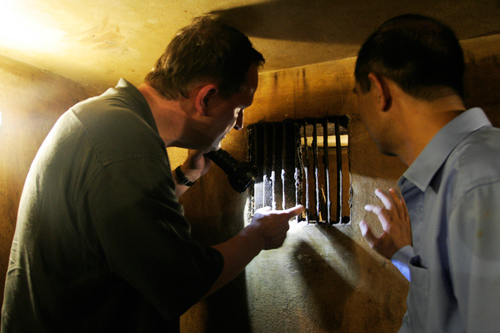 Malgré l’inondation, l’abri ne semble pas avoir été trop dégradé. Les murs en béton sont restés assez solides. Les allées tortueuses de l’abri étaient larges à peine d’un mètre et aménagées en zigzag. L’abri possédait cinq petites pièces. On y a trouvé deux vieilles bouteilles de vin, l’une vide et l’autre contenant du pétrole lampant à un tiers de son volume. Quelques ampoules électriques au plafond, des conduites d’eau, un système de ventilation et surtout des écritures et des traces peintes sur les murs parmi lesquelles on peut lire le nom de Bob Devereaux et la date du 17 août 1975. Bob Devereaux est un ancien diplomate australien, qui était en poste à Hanoi à l’époque. Il est venu pour la réouverture de l’abri.